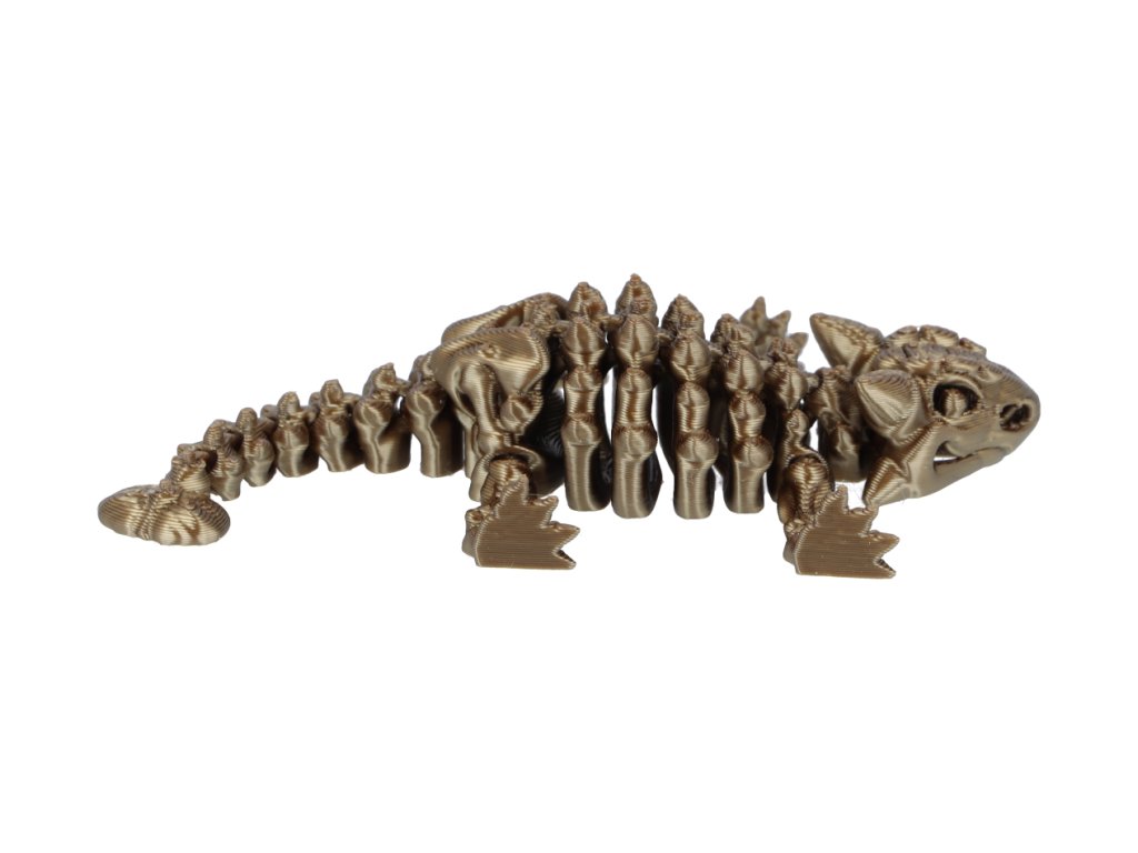 Tato unikátní kostra Ankylosaura je vyrobena pomocí 3D tisku z PLA materiálu a pochází z knihovny modelů Flexi Factory. Díky pohyblivým kloubům a detailnímu zpracování je ideální jako sběratelský kousek nebo dekorace pro milovníky dinosaurů.